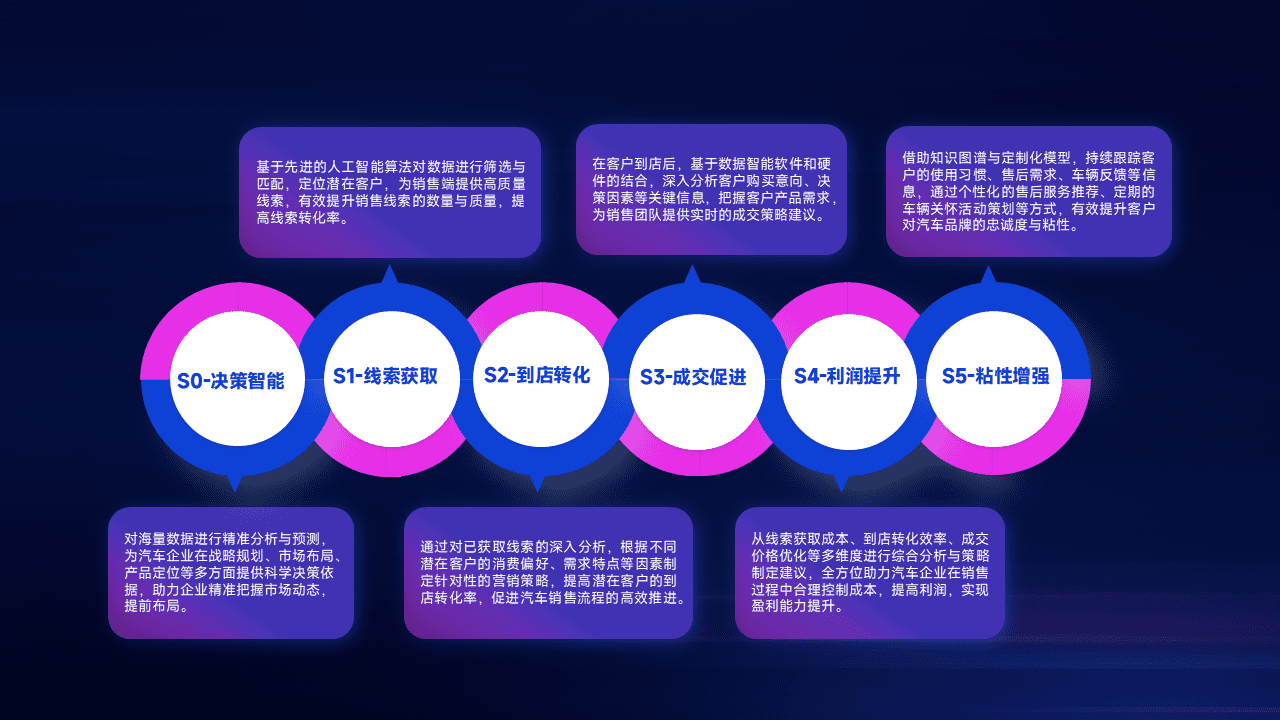 通过拓宽潜在客户来源、、、优化线索分配并提高到店转化率,,,,以增强销售效率。。。。同时,,,利用线索数据不断优化分析模型,,有效提升转化率,,,,扩大营销影响力。。。。